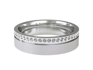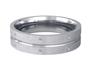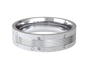 6mm gents angled with flat diamond patterned wedding ring