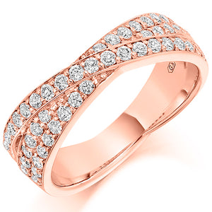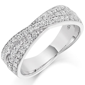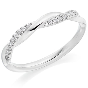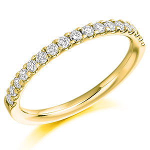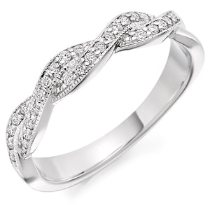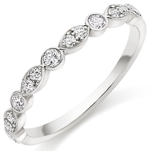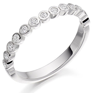 Ladies round brilliant grain set, rubover diamond wedding ring